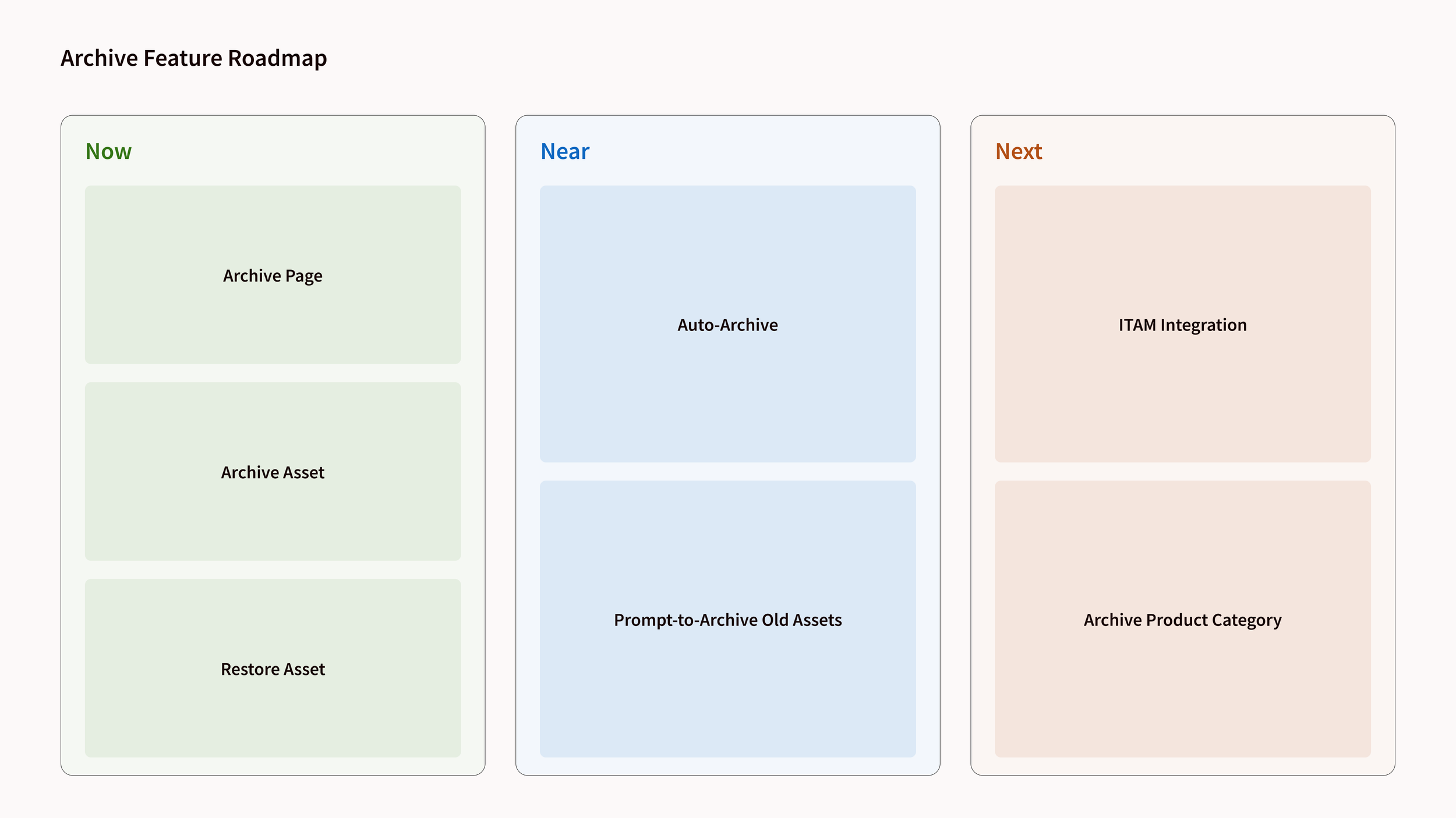 Instead of immediately deciding on a direction, our team prototyped the concepts with the most near-term feasibility. We uncovered UX issues and technical dependencies that made our choice easier. A simple Archive feature would be our best near-term choice.