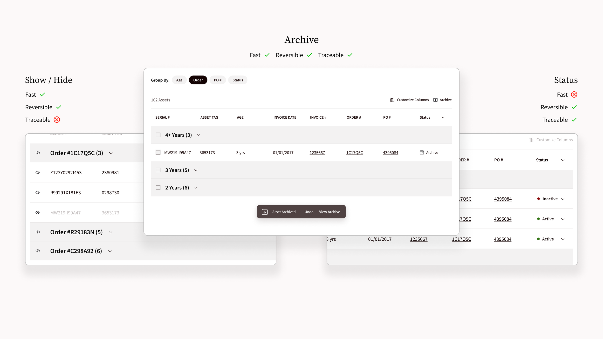Archive was one of many features our team build to make Asset Hub a robust tool for IT professionals. This feature best exemplifies how insights, collaborative concepting, prototypes and design refinement can make a simple feature very well suited to its users.