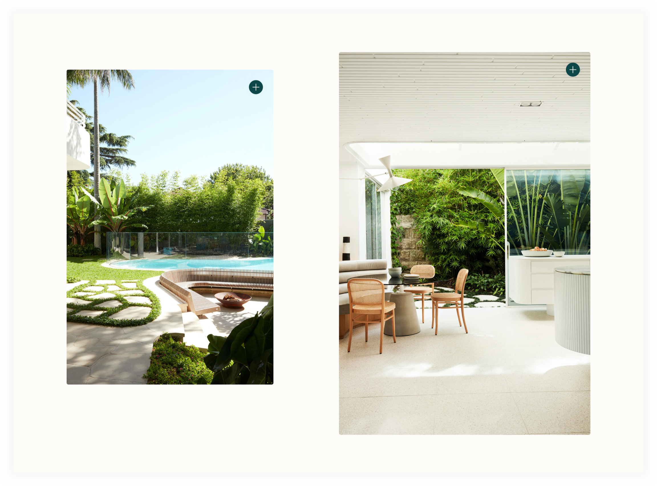 The editorial spaces were laid out to balance stunning photography with written descriptions that provide more nuance around architectural choices. Subtle shadows around text blocks and interface elements that alternate color to stay visible connect the viewer to the story without interfering.