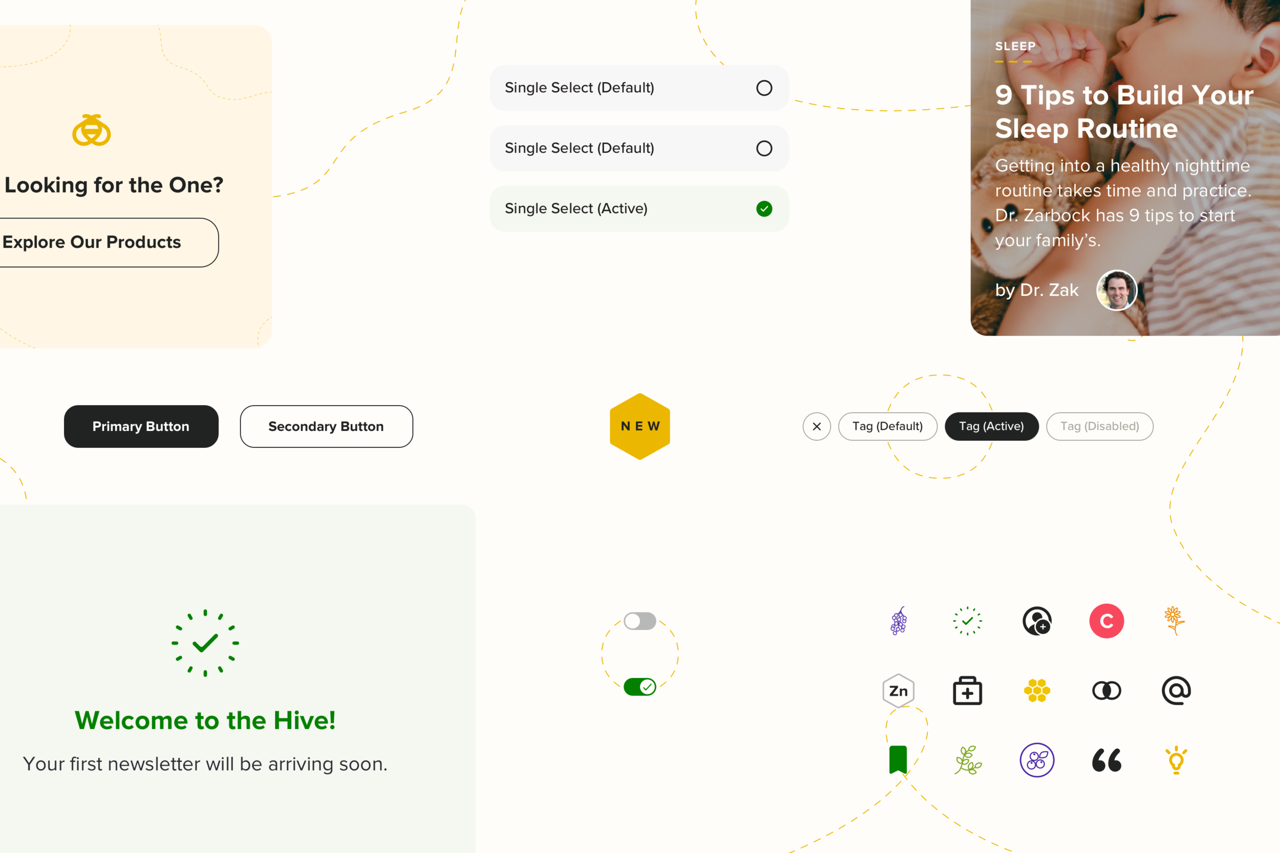 Thankfully, Zarbee’s brand is already full of personality. All was needed were clear spaces where best practice would live and brand personality would live. Zarbee’s new icon library is a great example.